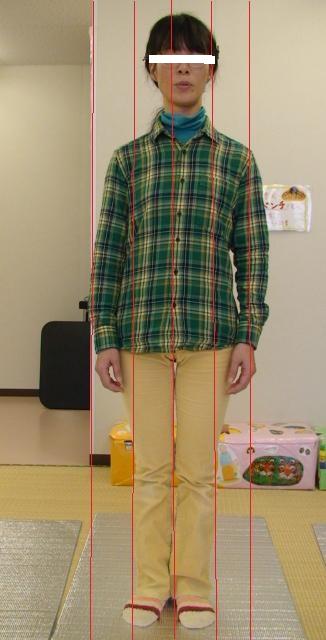 画像では見づらいですが、上半身が右方向に捻じれています。